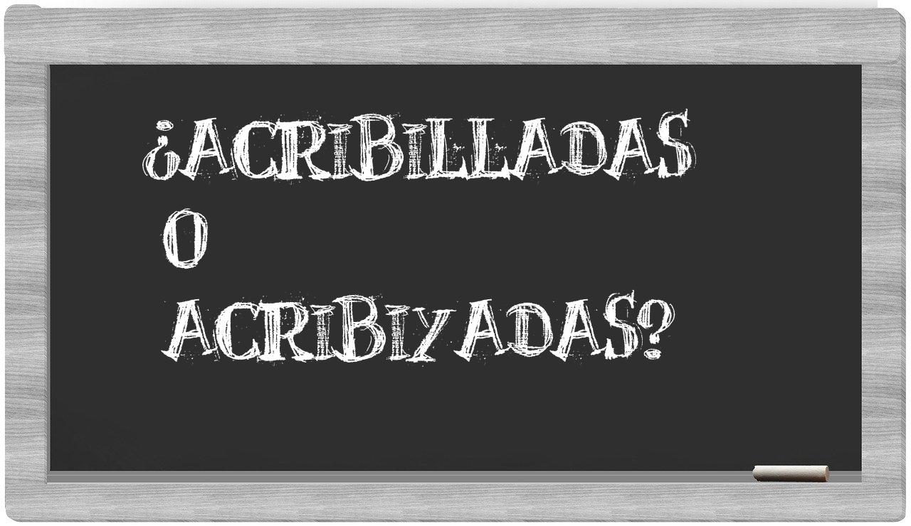 Cuando se trata de discernir entre acribilladas y acribiyadas, la decisión no debería ofrecer sombras de incertidumbre, puesto que solo acribilladas se encuentra debidamente registrada en el léxico de la Real Academia Española, mientras que acribiyadas carece de reconocimiento en su prestigioso Diccionario.
