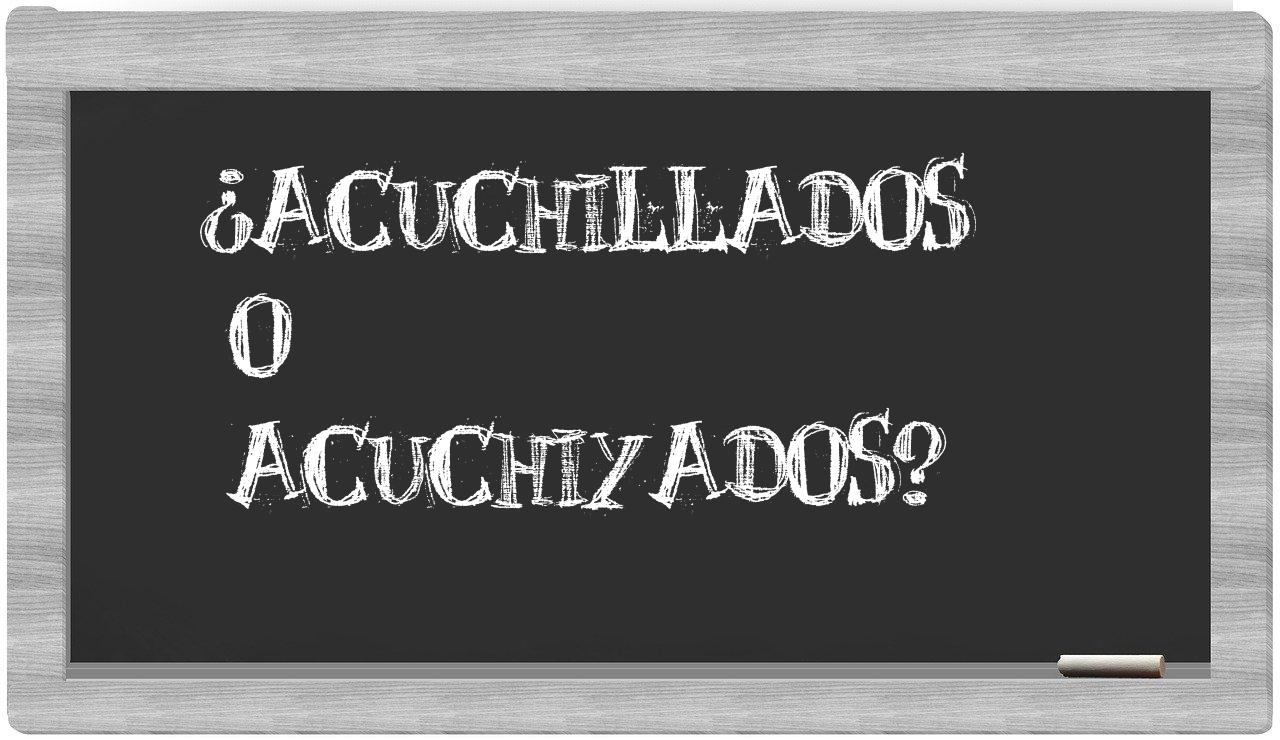 Cuando se trata de las expresiones acuchillados y acuchiyados, no cabe lugar para la incertidumbre, pues únicamente acuchillados se encuentra debidamente registrada, mientras que acuchiyados no figura en el prestigioso Diccionario de la Real Academia Española.