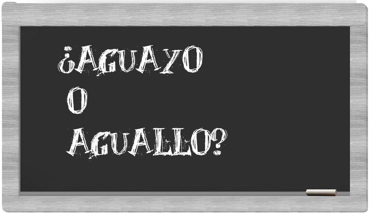 Cuando te enfrentes a la elección entre aguayo y aguallo, no vaciles en tu decisión, puesto que únicamente aguayo es la forma adecuada, mientras que aguallo no se encuentra registrada en el Diccionario de la Real Academia Española.