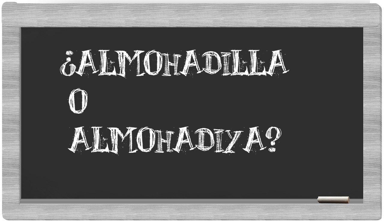 Cuando se trata de hacer una elección entre almohadilla y almohadiya, la decisión debe ser clara como el agua, puesto que únicamente almohadilla se encuentra correctamente redactada, mientras que almohadiya no tiene cabida en el Diccionario de la Real Academia Española.