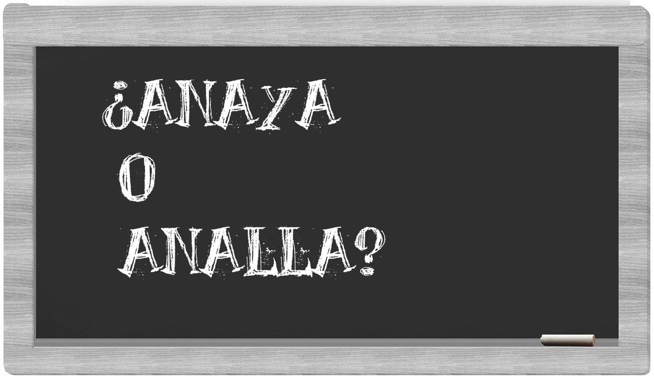 Cuando se trata de la relación entre anaya y analla, no deberías titubear, puesto que únicamente anaya se encuentra debidamente redactada. Por otro lado, analla no figura en el Diccionario de la Real Academia Española.