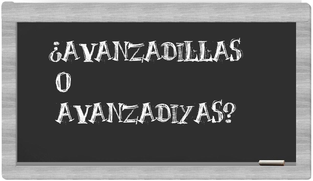 Cuando se presenta la disyuntiva entre avanzadillas y avanzadiyas, es fundamental que no vaciles, pues únicamente avanzadillas cuenta con la correcta ortografía. La palabra avanzadiyas no se encuentra registrada en el Diccionario de la Real Academia Española.
