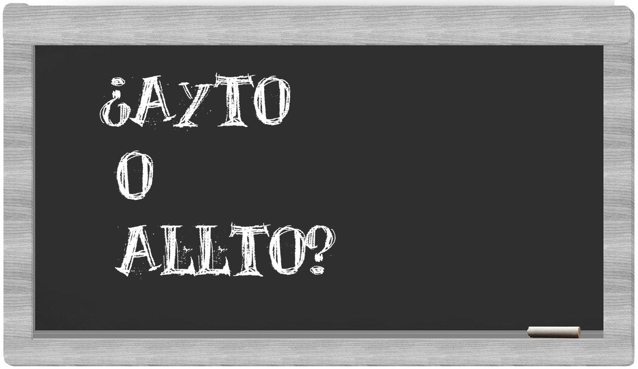En la situación específica que involucra los términos ayto y allto, nunca deberías titubear, dado que únicamente ayto se encuentra correctamente formulada. Por otro lado, allto no se halla registrada en el Diccionario de la Real Academia Española.