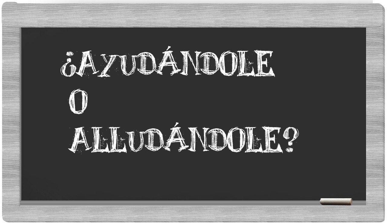 Cuando se trata de las términos ayudándole y alludándole, no hay lugar para la confusión, porque únicamente ayudándole figura con la ortografía adecuada. Por otro lado, alludándole no se encuentra registrada en el Diccionario de la Real Academia Española.