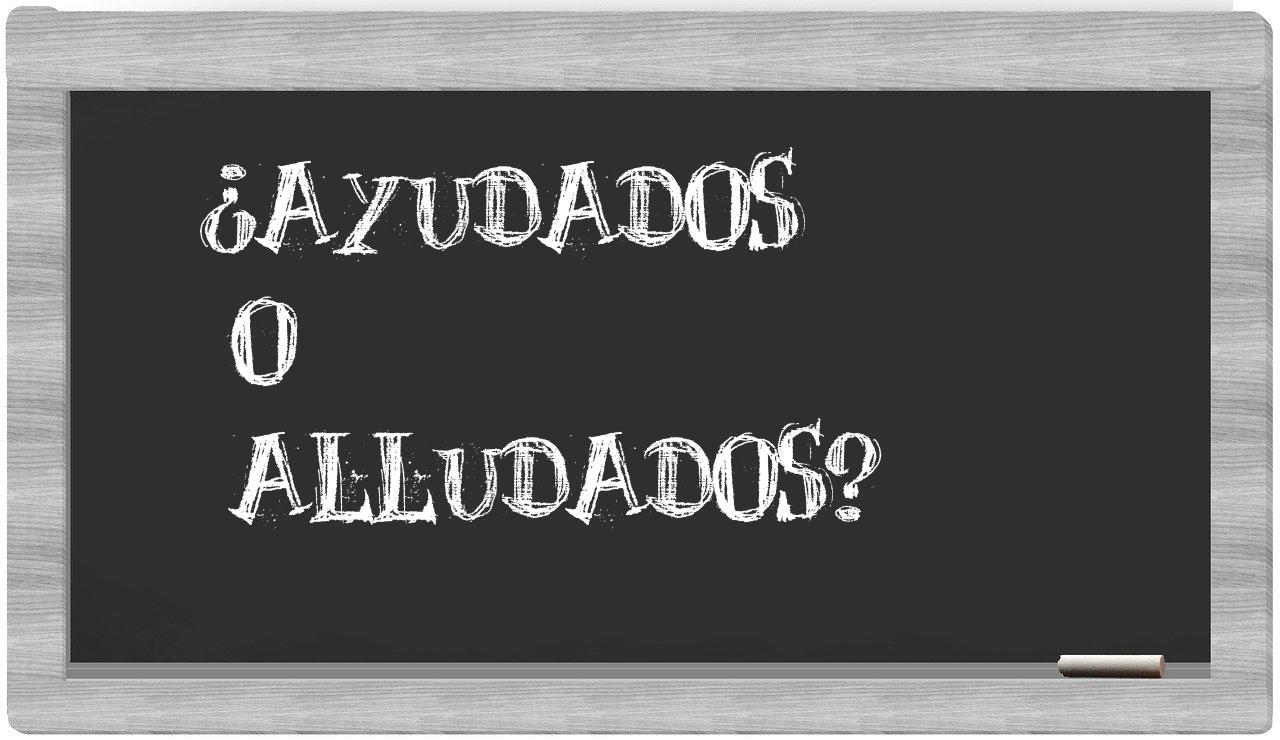 Cuando se trata de las expresiones ayudados y alludados, no debería haber espacio para la indecisión, puesto que únicamente ayudados se encuentra correctamente redactada. Por otra parte, alludados no figura en el prestigioso Diccionario de la Real Academia Española.