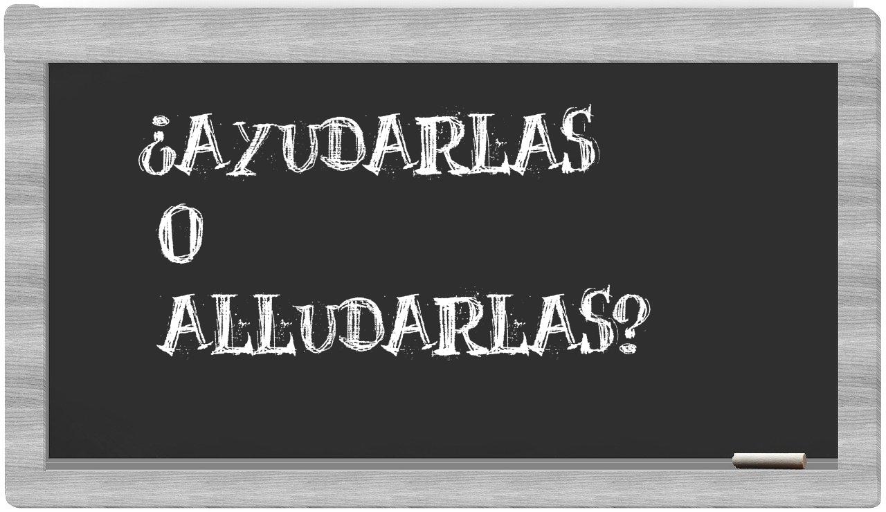 En la situación particular que involucra los términos ayudarlas y alludarlas, la elección nunca debería ser un dilema, dado que únicamente ayudarlas se encuentra correctamente formulada. Por otro lado, alludarlas carece de reconocimiento en el Diccionario de la Real Academia Española.