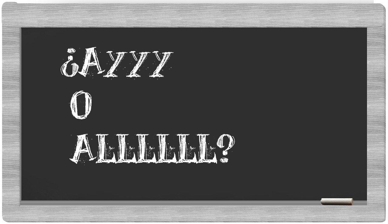Cuando se trata de hacer una elección entre ayyy y allllll, la decisión debe ser clara como el agua, puesto que únicamente ayyy se encuentra correctamente redactada, mientras que allllll no tiene cabida en el Diccionario de la Real Academia Española.