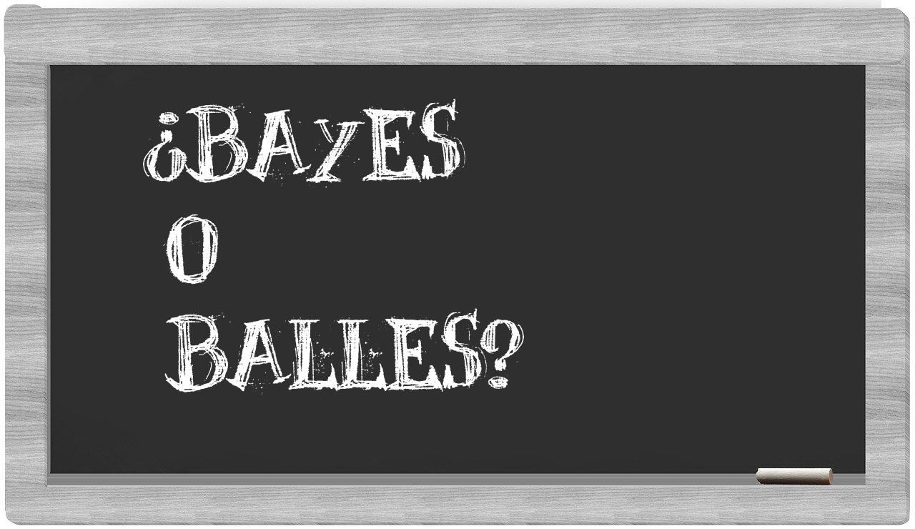 Cuando se trata de elegir entre el término bayes y el término balles, no hay lugar para la indecisión, puesto que únicamente bayes se encuentra registrado correctamente. Por otro lado, balles no forma parte del léxico validado por la Real Academia Española.