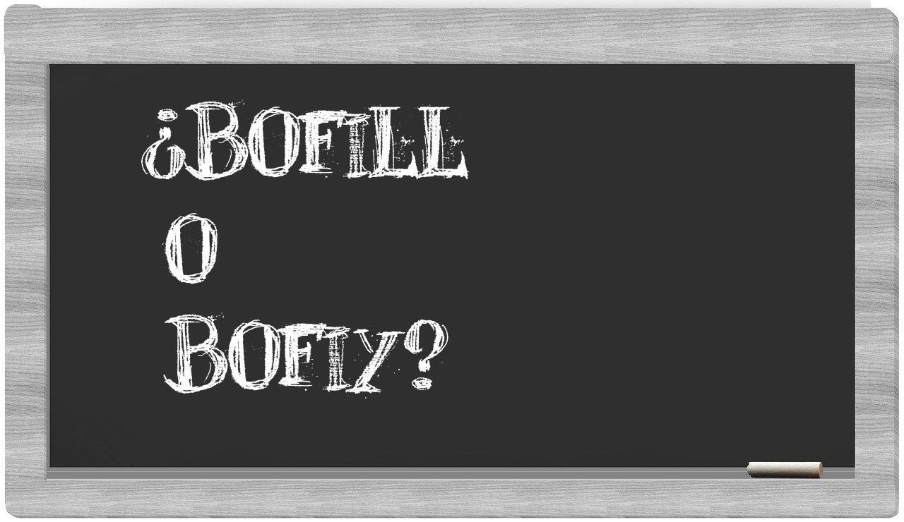 Cuando se presenta la disyuntiva entre bofill y bofiy, la elección debe ser clara: únicamente bofill es la opción adecuada, puesto que bofiy no figura en el Diccionario de la Real Academia Española.