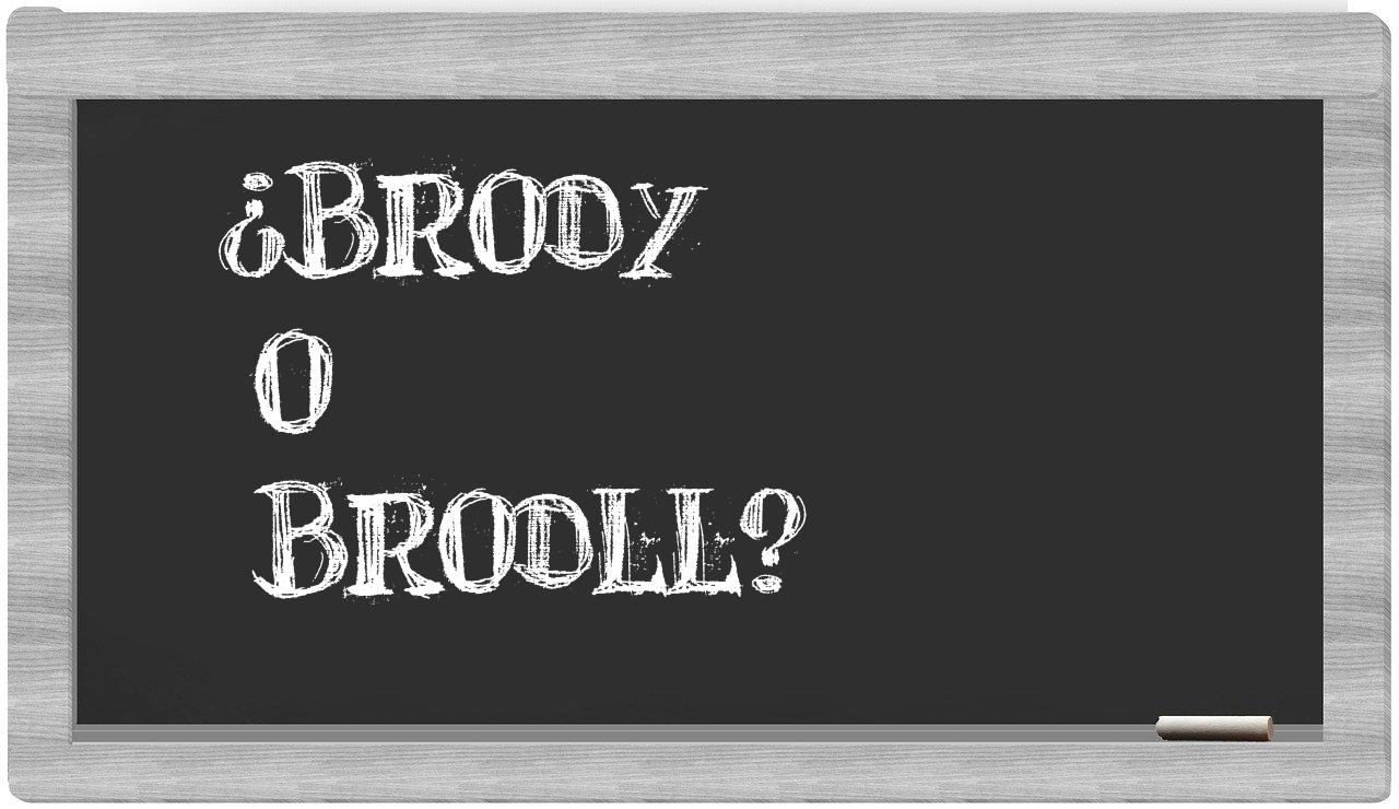 Cuando se presenta la elección entre brody y brodll, no hay lugar para la incertidumbre, dado que únicamente brody se encuentra correctamente redactada. Sorprendentemente, brodll queda fuera de las páginas del Diccionario de la Real Academia de la Lengua.