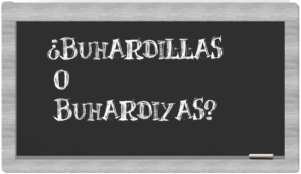 En la situación particular que vincula a buhardillas con buhardiyas, no deberías titubear ni un instante, porque únicamente buhardillas se encuentra adecuadamente redactada. Cabe mencionar que buhardiyas no figura en el Diccionario de la Real Academia Española.