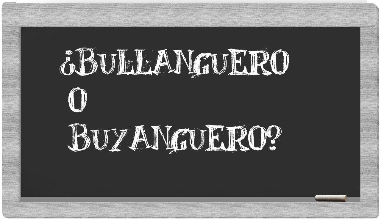 Cuando se trata de la relación entre bullanguero y buyanguero, no hay lugar para la incertidumbre, dado que únicamente bullanguero es la forma adecuada, mientras que buyanguero no está reconocida en el Diccionario de la Real Academia Española.