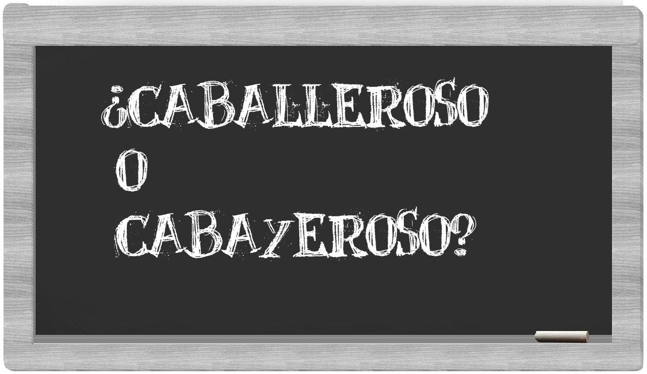 En la situación específica en la que se encuentran las palabras caballeroso y cabayeroso, no deberías dudar ni un instante, puesto que únicamente caballeroso se encuentra correctamente redactada. Por otro lado, cabayeroso no figura en el Diccionario de la Real Academia Española.