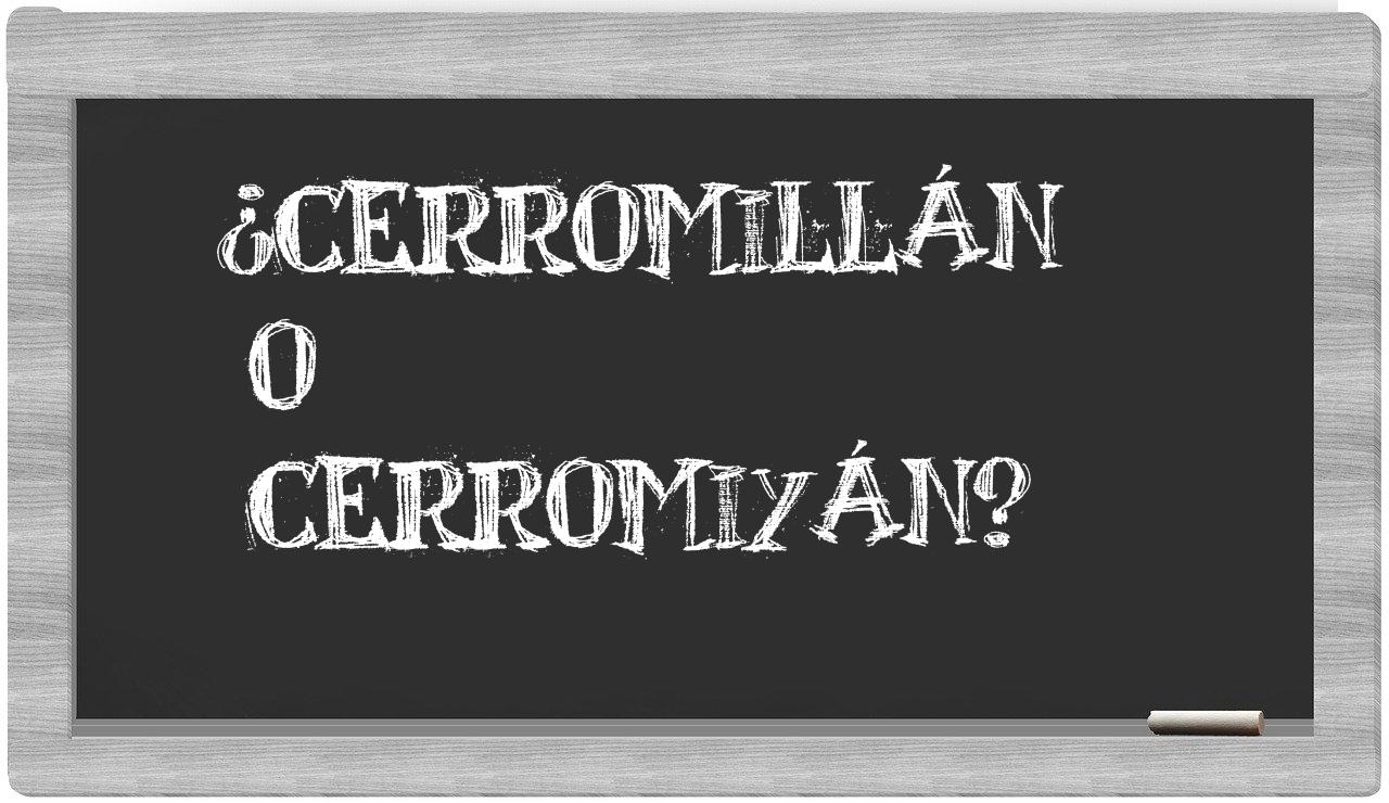 Cuando te enfrentes a la elección entre cerromillán y cerromiyán, no vaciles ni un instante, pues únicamente cerromillán es la forma correcta, mientras que cerromiyán no figura en el Diccionario de la Real Academia Española.