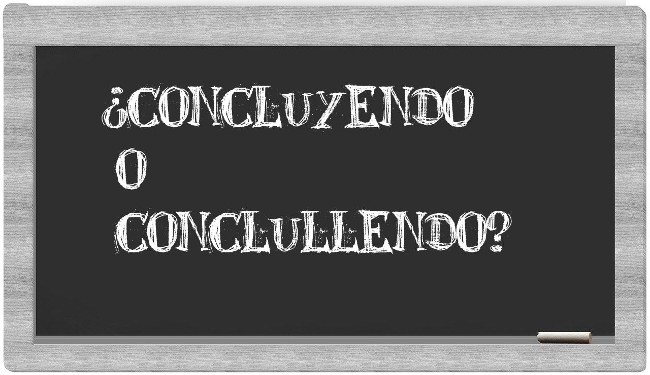 Respecto a la relación entre concluyendo y conclullendo, es fundamental no titubear, puesto que únicamente concluyendo se encuentra adecuadamente registrada. En cambio, conclullendo no figura en el Diccionario de la Real Academia Española.