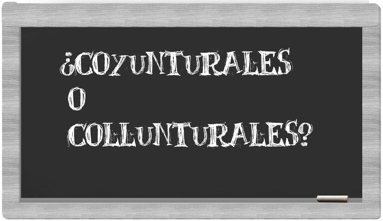 Cuando se trata de las expresiones coyunturales y collunturales, es fundamental que permanezcas seguro, puesto que únicamente coyunturales está correctamente formulada. Por otro lado, collunturales no forma parte del léxico reconocido por la Real Academia de la Lengua.
