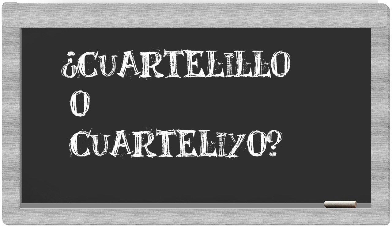 En la situación específica que involucra los términos cuartelillo y cuarteliyo, no deberías experimentar incertidumbre, pues únicamente cuartelillo se encuentra correctamente redactada; por otro lado, cuarteliyo no figura en el Diccionario de la Real Academia Española.