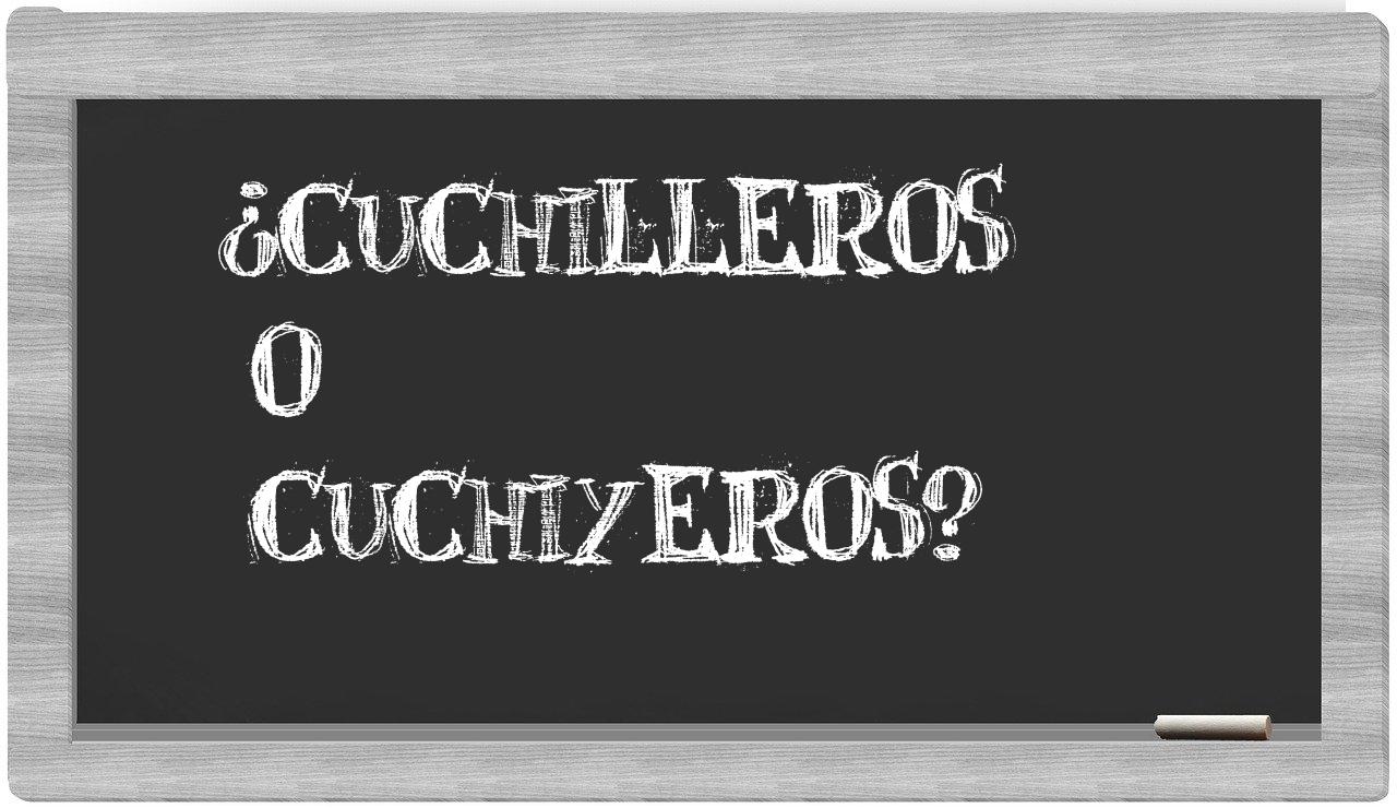 Cuando se trata de la distinción entre cuchilleros y cuchiyeros, no debes titubear, porque únicamente cuchilleros se encuentra registrada de manera adecuada. Por otro lado, cuchiyeros no forma parte del léxico aceptado por la Real Academia Española.