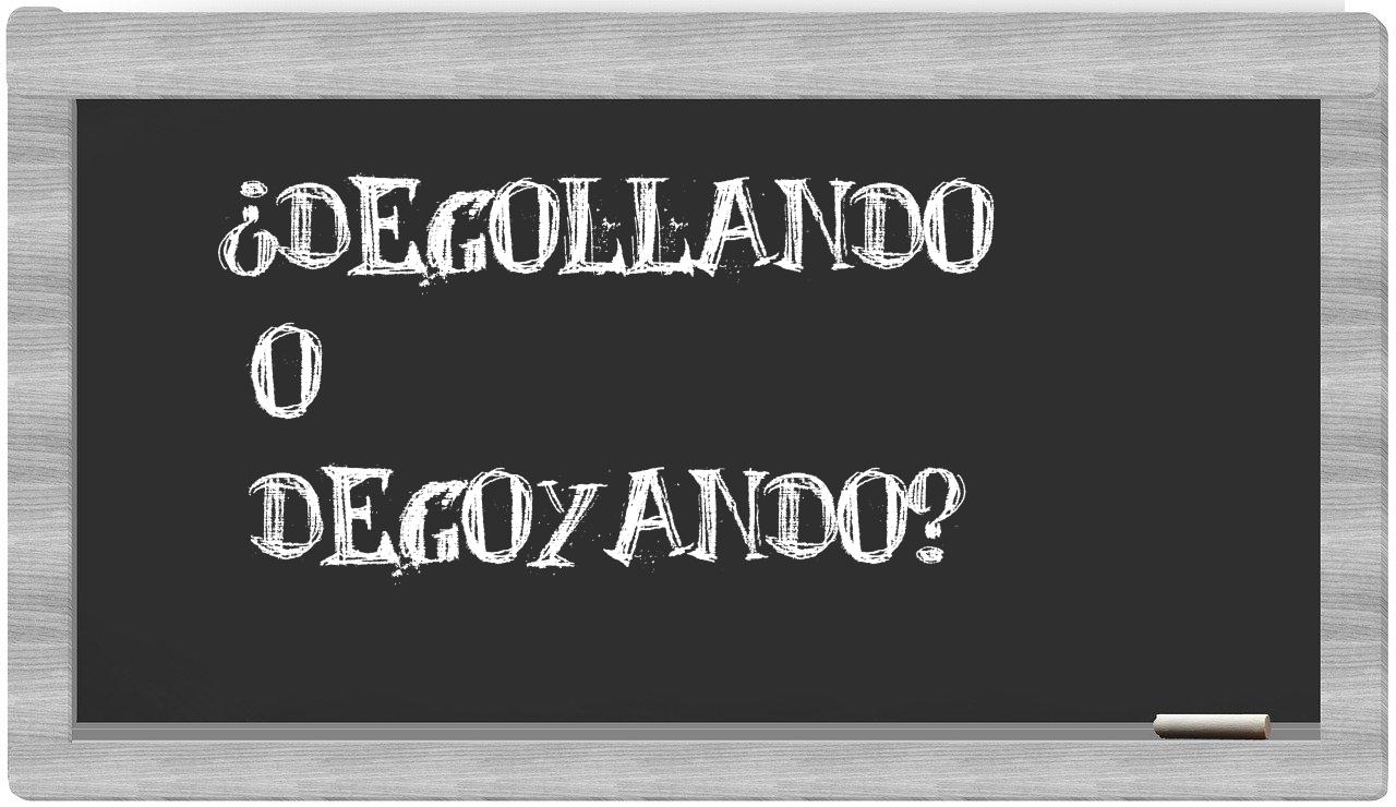 Cuando se trata de las expresiones degollando y degoyando, no deberías titubear en ninguna circunstancia, puesto que únicamente degollando se encuentra adecuadamente formulada. En cambio, degoyando no se halla registrada en el Diccionario de la Real Academia Española.