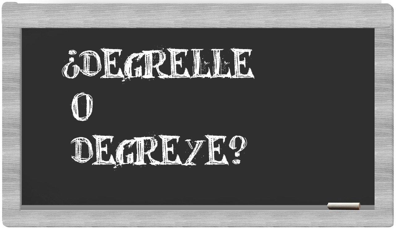En el contexto específico entre los términos degrelle y degreye, no deberías titubear, pues únicamente degrelle se encuentra correctamente ortografiado. En cambio, degreye no figura en el Diccionario de la Real Academia Española.