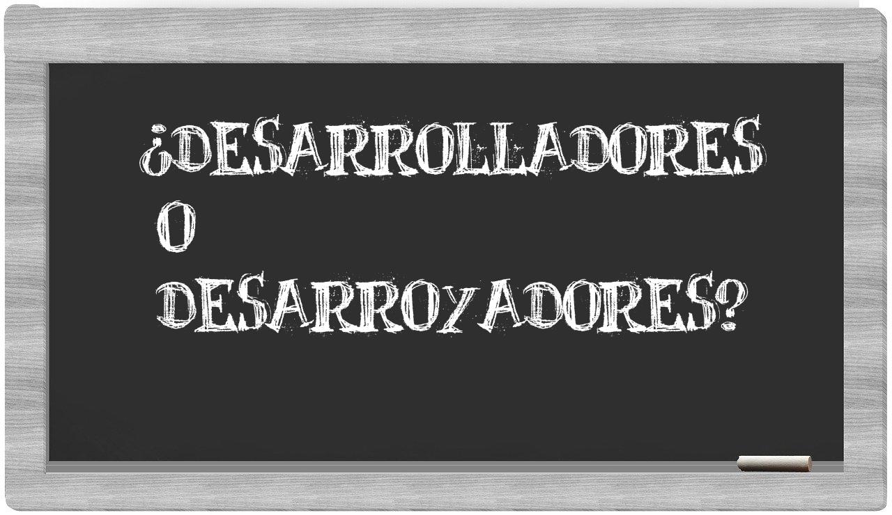 Cuando se presenta la disyuntiva entre desarrolladores y desarroyadores, es fundamental que no vaciles, pues únicamente desarrolladores cuenta con la correcta ortografía. La palabra desarroyadores no se encuentra registrada en el Diccionario de la Real Academia Española.