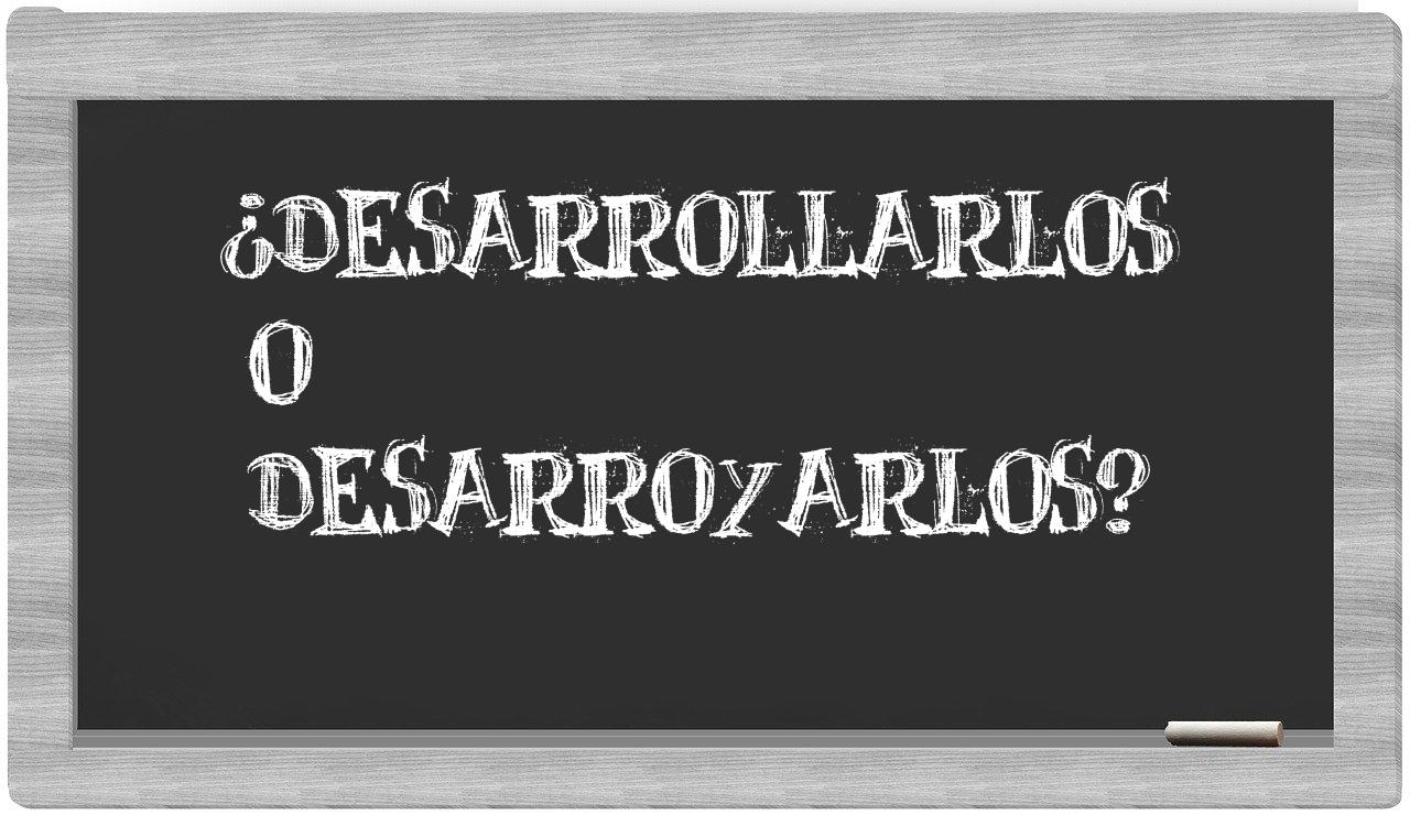 En la situación específica que involucra las voces desarrollarlos y desarroyarlos, nunca deberías titubear, puesto que únicamente desarrollarlos es la que se encuentra adecuadamente redactada. La forma desarroyarlos no se halla registrada en el Diccionario de la Real Academia Española.