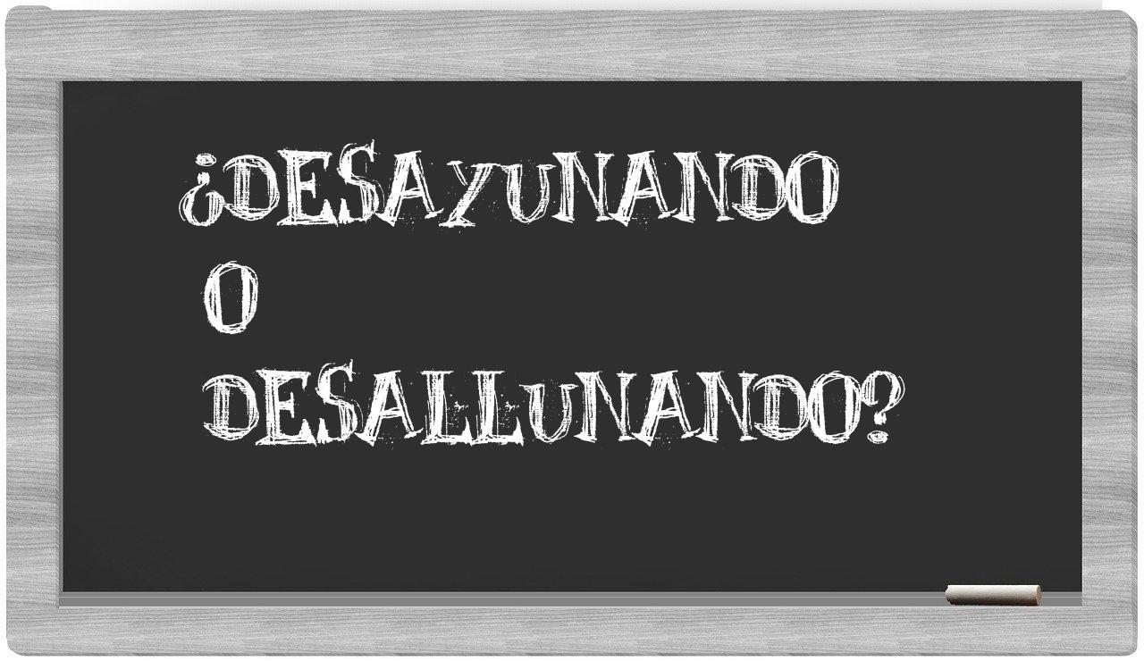 Cuando se presenta el dilema entre desayunando y desallunando, es importante no vacilar, porque únicamente desayunando se encuentra correctamente redactada. Por otro lado, desallunando no figura en el Diccionario de la Real Academia Española.