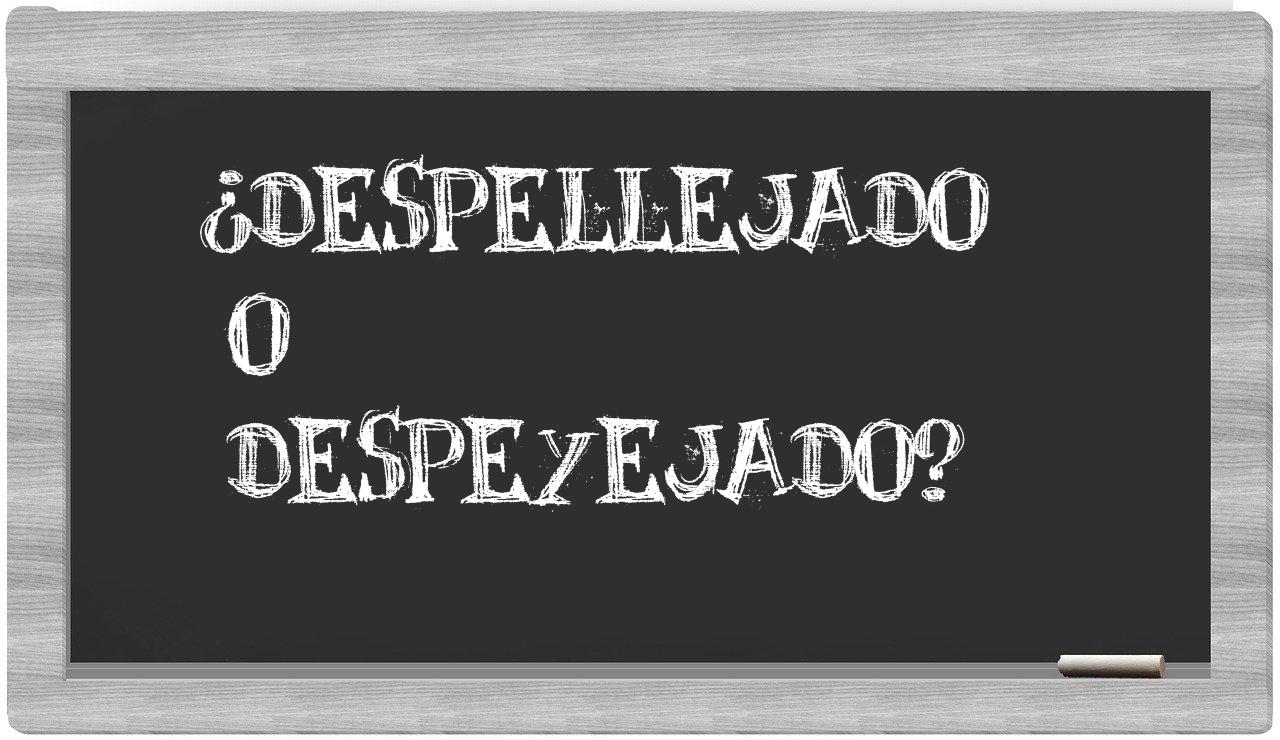 Cuando se plantea la comparación entre despellejado y despeyejado, nunca deberías titubear, pues únicamente despellejado se encuentra aceptada como correcta; en cambio, despeyejado es una palabra que no figura en el Diccionario de la Real Academia Española.