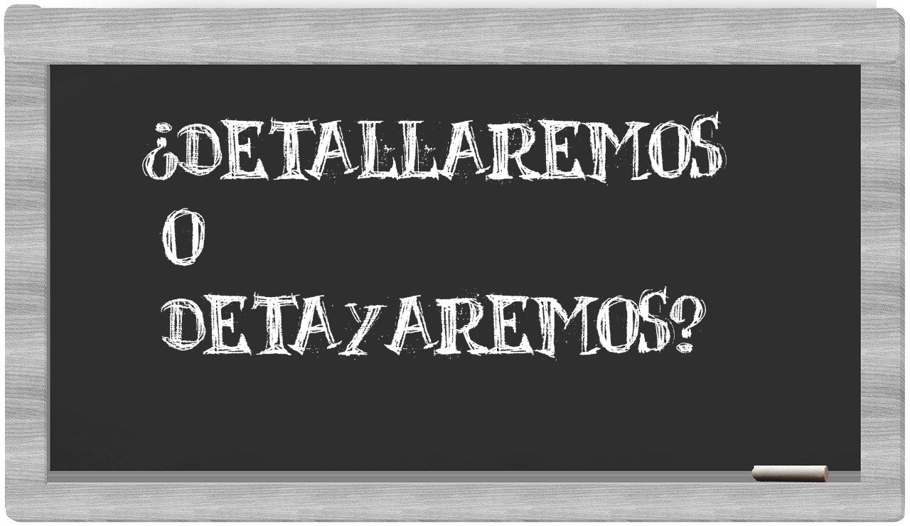 Cuando se trata de la elección entre detallaremos y detayaremos, no hay lugar para la indecisión, dado que únicamente detallaremos se halla debidamente registrada como correcta. En cambio, detayaremos no forma parte del acervo léxico reconocido por la Real Academia Española.