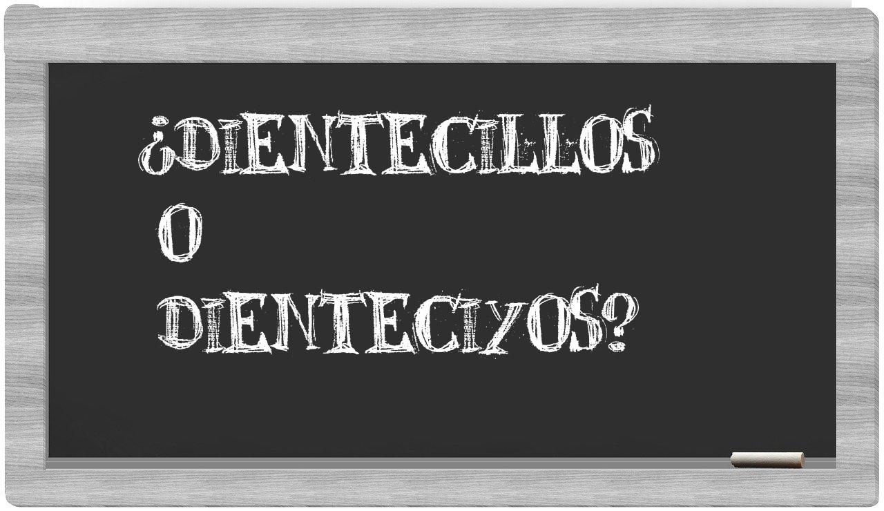 En la situación específica que involucra a dientecillos y dienteciyos, es fundamental que no albergues ninguna incertidumbre, puesto que únicamente dientecillos se encuentra correctamente redactada. En cambio, dienteciyos no se registra en el Diccionario de la Real Academia Española.