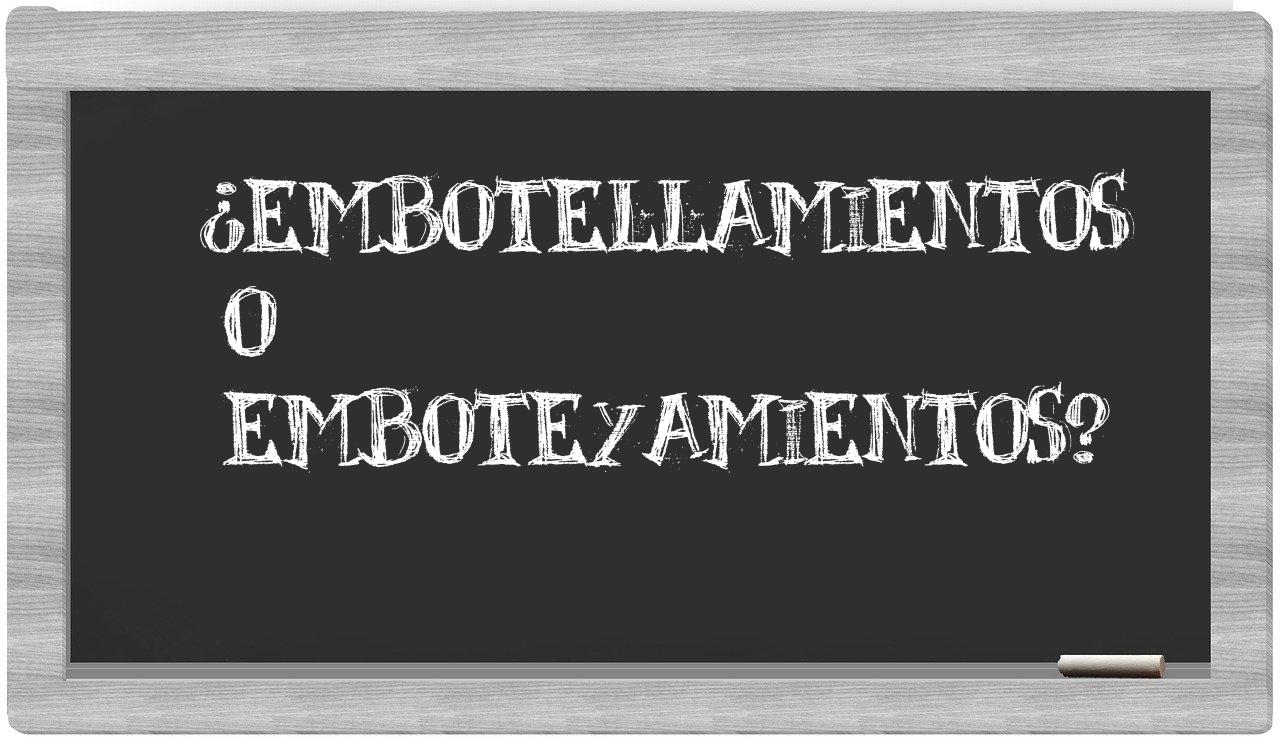 En la situación particular que involucra los términos embotellamientos y emboteyamientos, no deberías albergar ninguna incertidumbre, puesto que únicamente embotellamientos se encuentra debidamente registrada. Por otro lado, emboteyamientos carece de presencia en el Diccionario de la Real Academia Española.