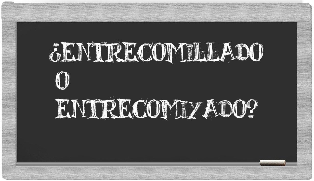 Cuando se trata de elegir entre entrecomillado y entrecomiyado, no hay lugar para la incertidumbre, pues únicamente entrecomillado se encuentra debidamente registrada en el Diccionario de la Real Academia Española, a diferencia de entrecomiyado que no tiene reconocimiento en su autoridad lingüística.