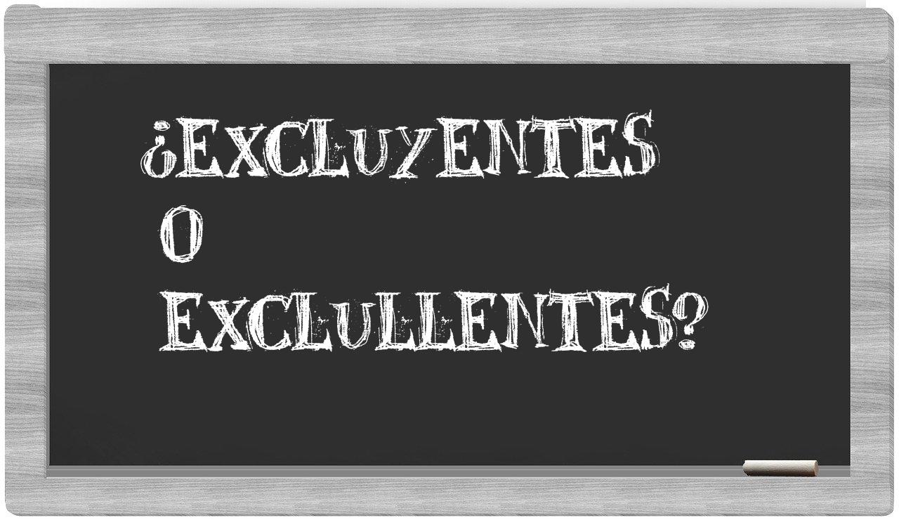 Cuando se presenta la comparación entre excluyentes y exclullentes, la elección es innegable, puesto que únicamente excluyentes se encuentra adecuadamente registrada. En cambio, exclullentes carece de reconocimiento en el Diccionario de la Real Academia Española.