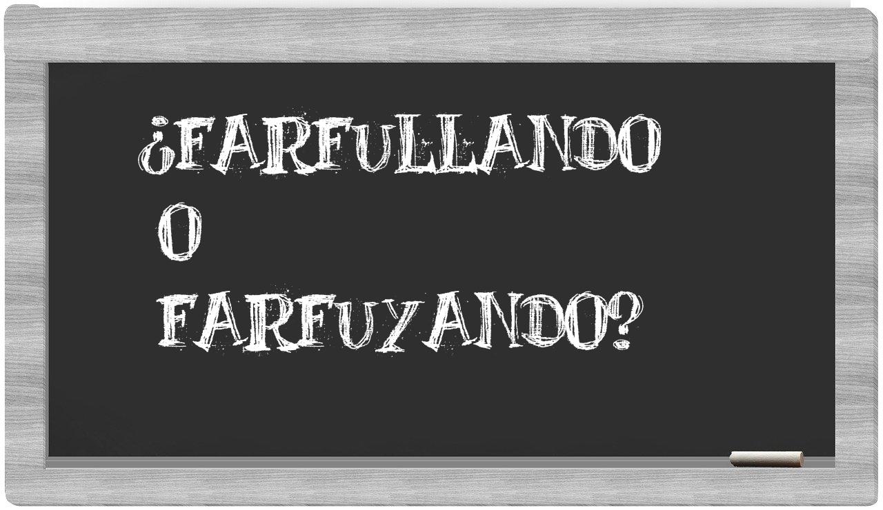 En la situación específica sobre los términos farfullando y farfuyando, nunca deberías experimentar incertidumbre, puesto que únicamente farfullando se encuentra correctamente redactada. La palabra farfuyando no figura en el Diccionario de la Real Academia Española.