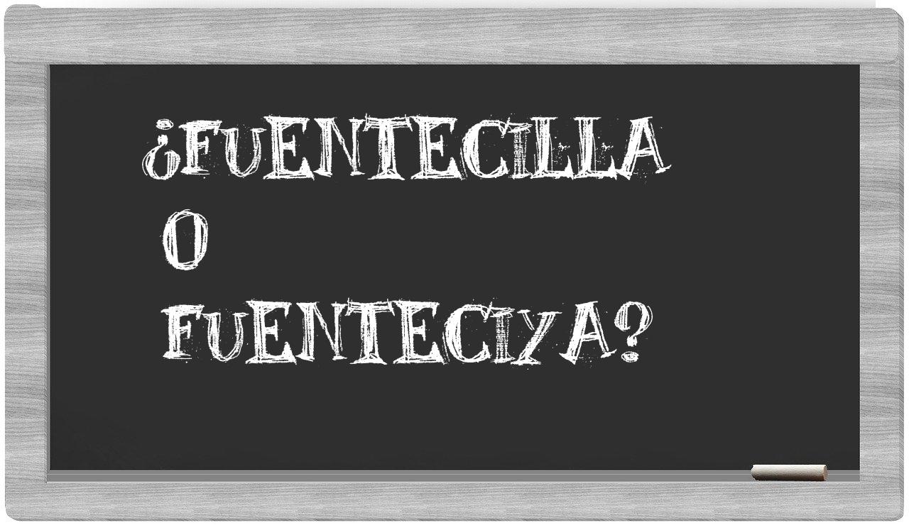 Cuando te enfrentes a la disyuntiva entre fuentecilla y fuenteciya, no vaciles ni un instante, porque solo fuentecilla se encuentra correctamente redactada; por otro lado, fuenteciya no se halla registrada en el prestigioso Diccionario de la Real Academia Española.