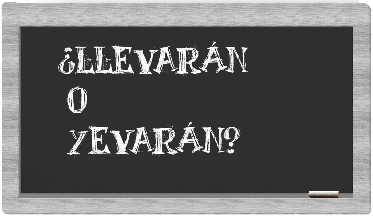 Cuando se trata de elegir entre llevarán y yevarán, la elección debería ser clara como el agua, puesto que solo llevarán es la forma correctamente adoptada en nuestro idioma, mientras que yevarán brilla por su ausencia en el Diccionario de la Real Academia Española.