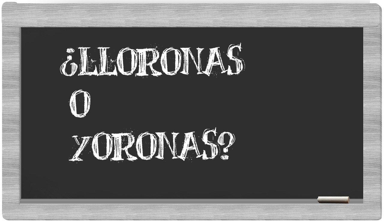 Cuando se trata de la elección entre lloronas y yoronas, no hay espacio para la incertidumbre, puesto que únicamente lloronas se encuentra correctamente formulada, mientras que yoronas no tiene cabida en el repertorio del Diccionario de la Real Academia Española.