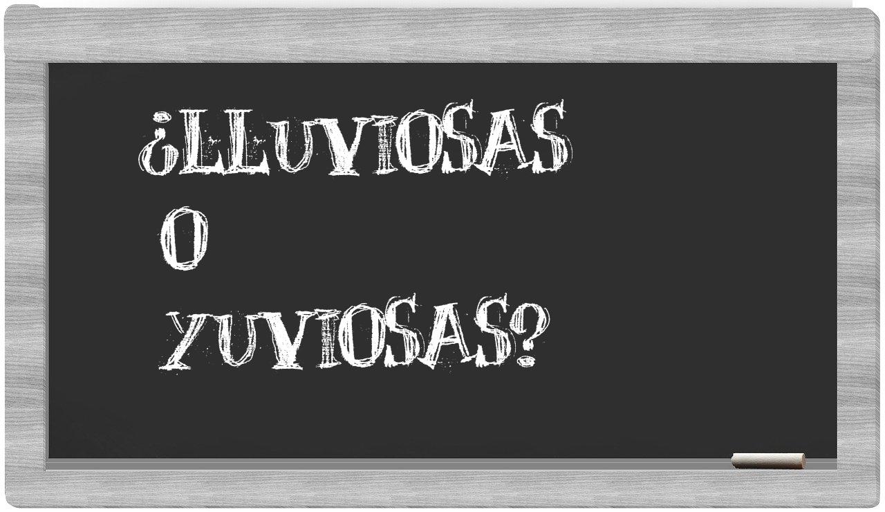 Cuando se presenta la elección entre lluviosas y yuviosas, la decisión debería ser clara, porque únicamente lluviosas se encuentra adecuadamente registrada en el Diccionario de la Real Academia Española, mientras que yuviosas no tiene cabida en su léxico.