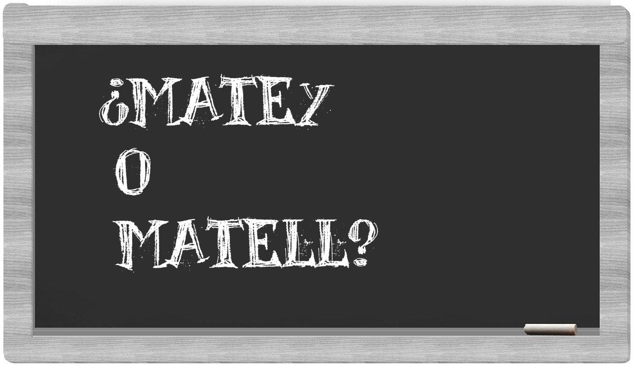 En el particular contexto que une a matey con matell, es fundamental que no haya titubeos, puesto que solo matey representa la forma adecuada, mientras que matell carece de reconocimiento en el Diccionario de la Real Academia Española.