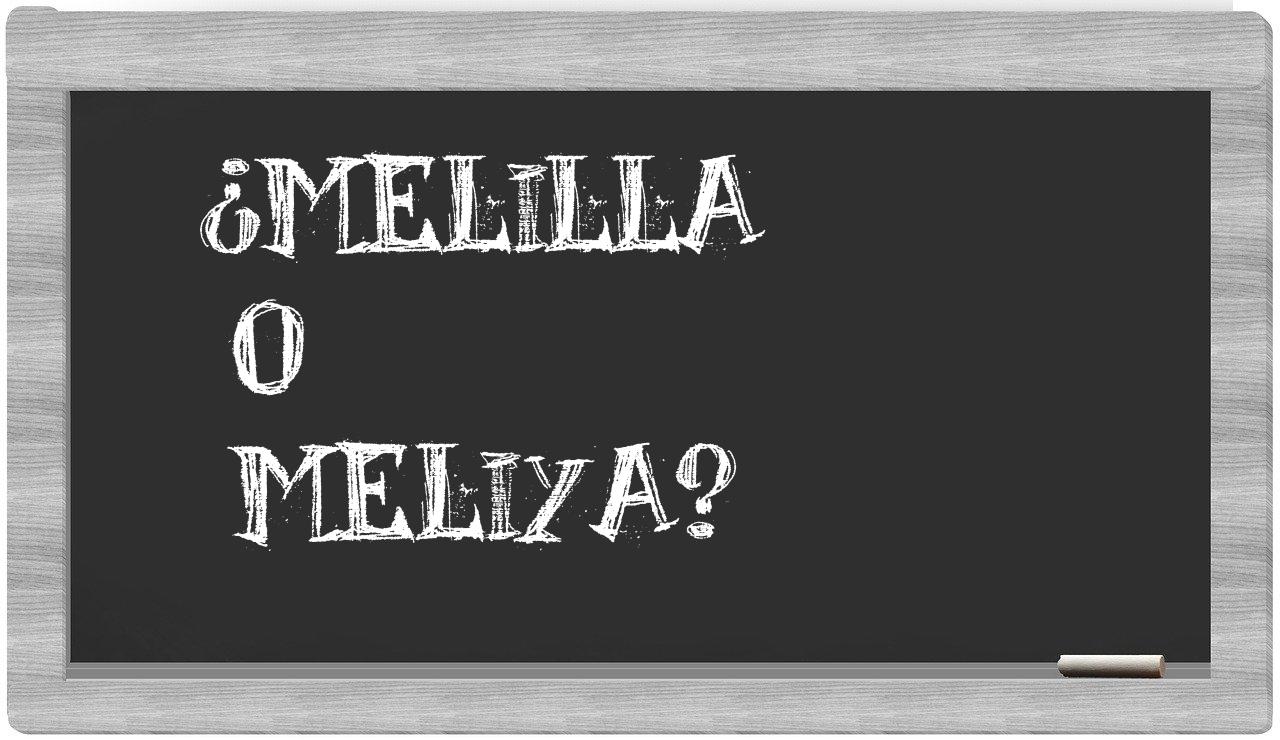 Cuando se trata del particular enfrentamiento entre melilla y meliya, no deberías titubear, puesto que únicamente melilla es la forma correcta; en cambio, meliya no figura en el venerado Diccionario de la Real Academia Española.