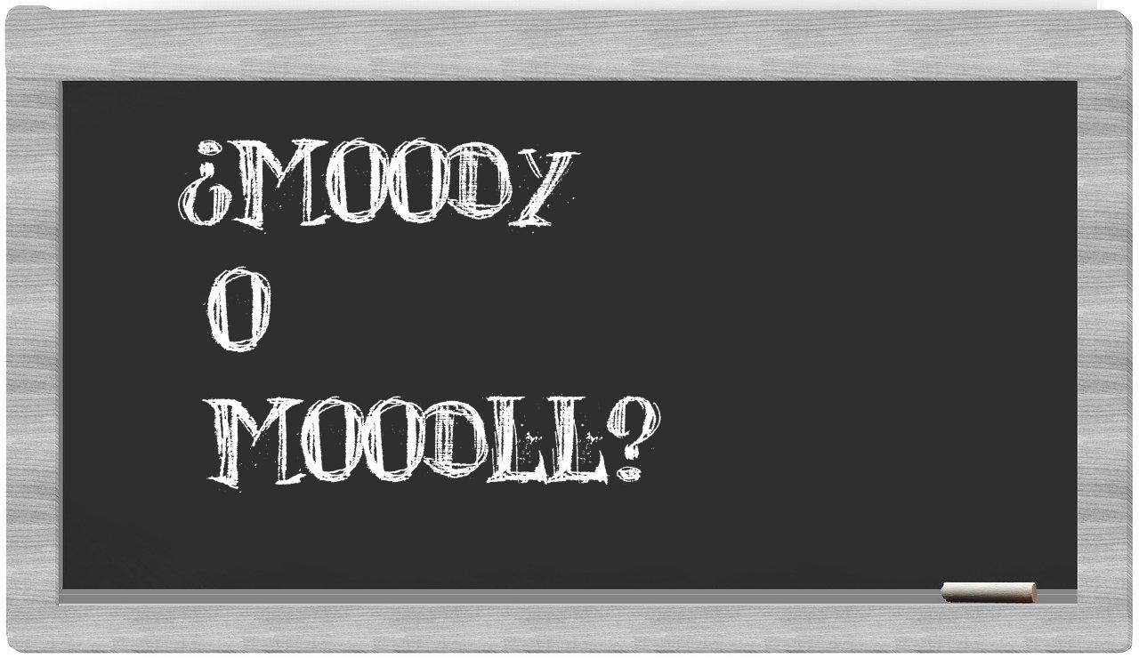 Respecto a la relación particular entre moody y moodll, no hay lugar a la incertidumbre, puesto que únicamente moody presenta una ortografía adecuada. Por otro lado, moodll no se encuentra registrada en el Diccionario de la Real Academia Española.
