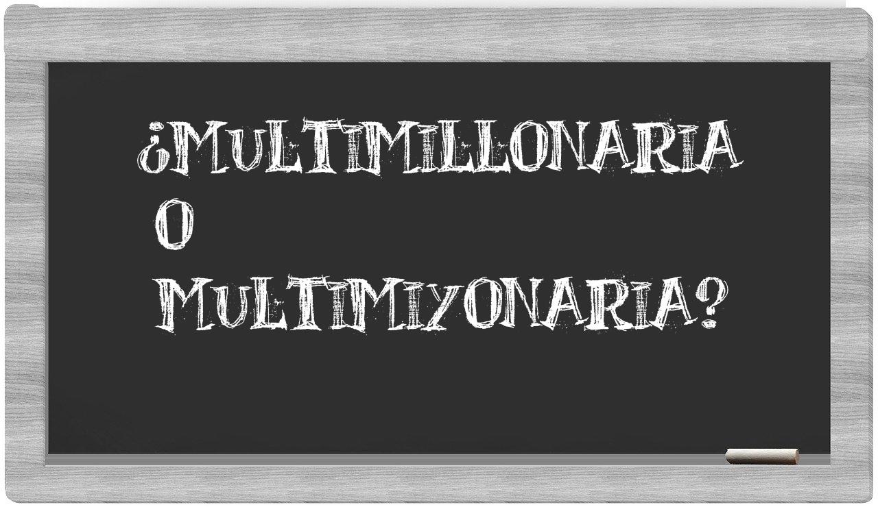 Cuando se presenta la disyuntiva entre multimillonaria y multimiyonaria, es esencial que no generes confusión, puesto que únicamente multimillonaria es la forma adecuada y aceptada; por el contrario, multimiyonaria carece de reconocimiento en el Diccionario de la Real Academia Española.