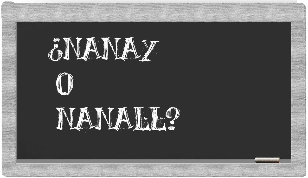Cuando se presenta la disyuntiva entre nanay y nanall, la elección no debería suscitar ninguna incertidumbre, dado que únicamente nanay cuenta con la ortografía adecuada, mientras que nanall no se encuentra registrada en el Diccionario de la Real Academia Española.