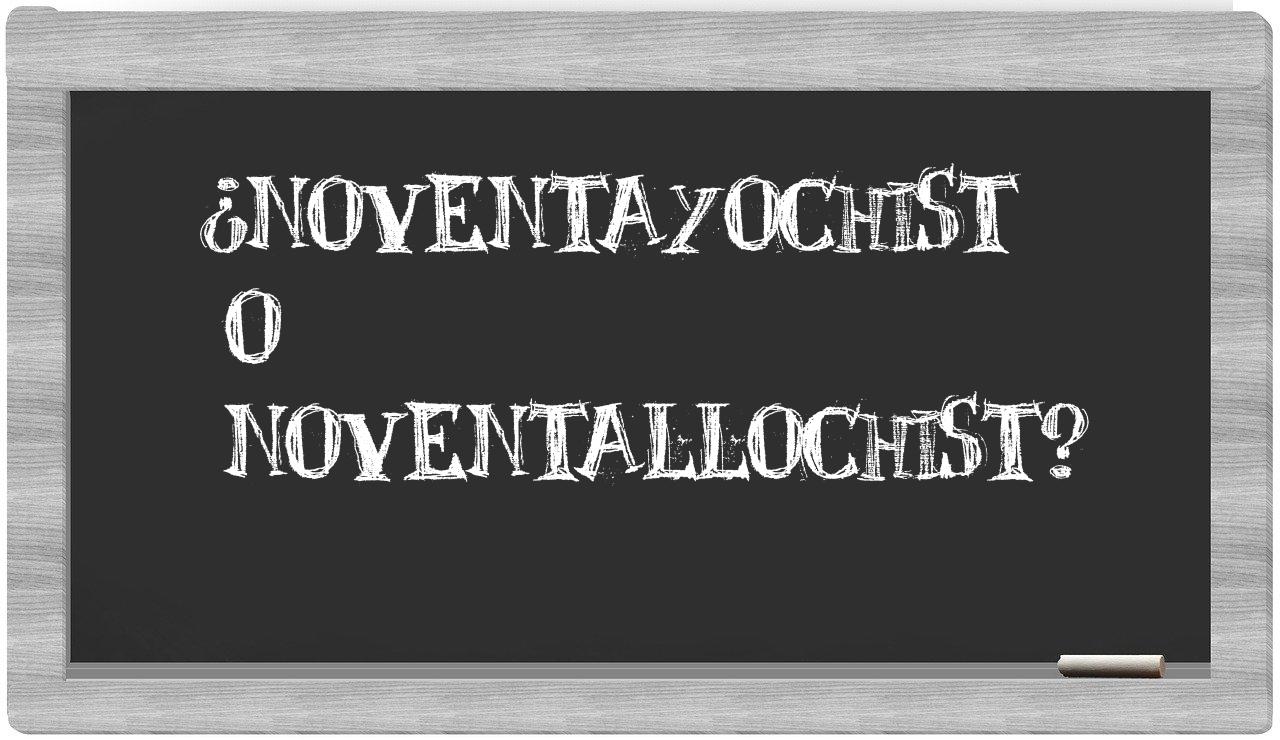 Cuando se presenta la cuestión entre noventayochist y noventallochist, es fundamental que no albergues ninguna incertidumbre, puesto que únicamente noventayochist es la que se encuentra adecuadamente redactada. Por otra parte, noventallochist no forma parte del repertorio del Diccionario de la Real Academia Española.