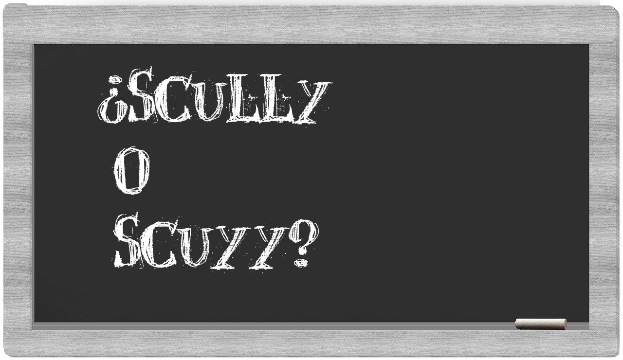 Cuando se presenta la comparación entre scully y scuyy, es fundamental que no vaciles, puesto que únicamente scully es la forma correcta. Por otro lado, scuyy no figura en el Diccionario de la Real Academia Española.