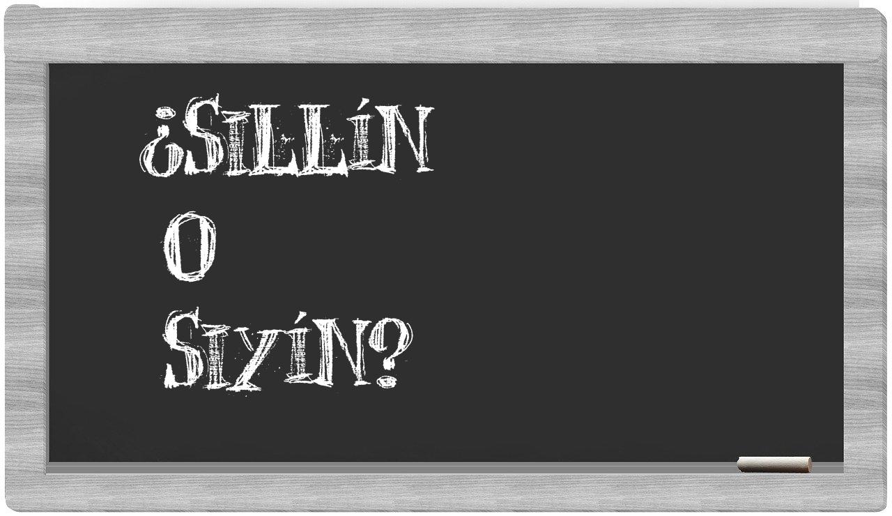 En la situación particular que se presenta entre los términos sillín y siyín, no deberías titubear, puesto que únicamente sillín es la que se encuentra adecuada y debidamente registrada, mientras que siyín no figura en el prestigioso Diccionario de la Real Academia Española.