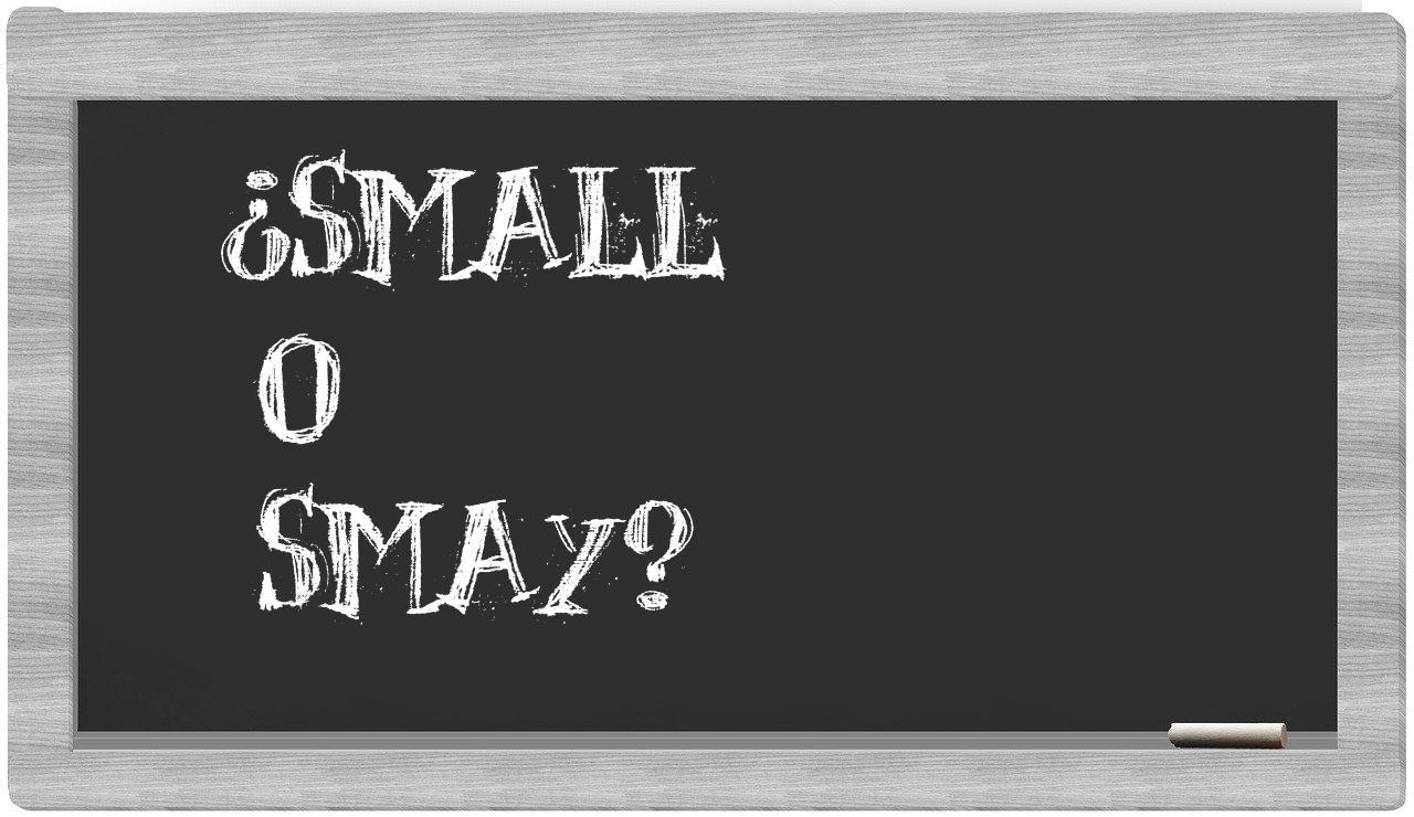 Cuando se trata de hacer una elección entre small y smay, la decisión debe ser clara como el agua, puesto que únicamente small se encuentra correctamente redactada, mientras que smay no tiene cabida en el Diccionario de la Real Academia Española.