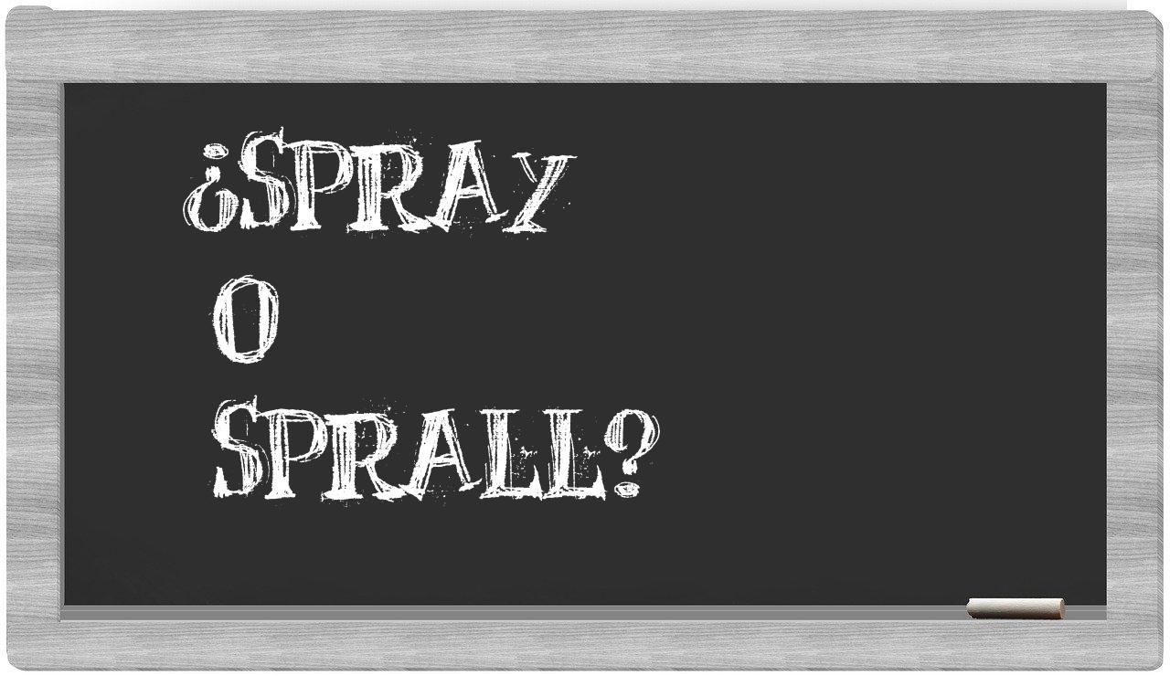 Cuando se presenta la disyuntiva entre spray y sprall, la elección no debería suscitar ninguna incertidumbre, dado que únicamente spray cuenta con la ortografía adecuada, mientras que sprall no se encuentra registrada en el Diccionario de la Real Academia Española.