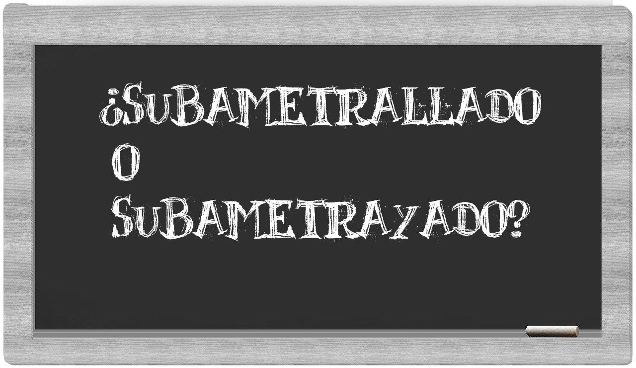 Cuando te enfrentes a las palabras subametrallado y subametrayado, es fundamental que no titubees, pues únicamente subametrallado cuenta con la ortografía aceptada, mientras que subametrayado no se encuentra registrada en el Diccionario de la Real Academia Española.