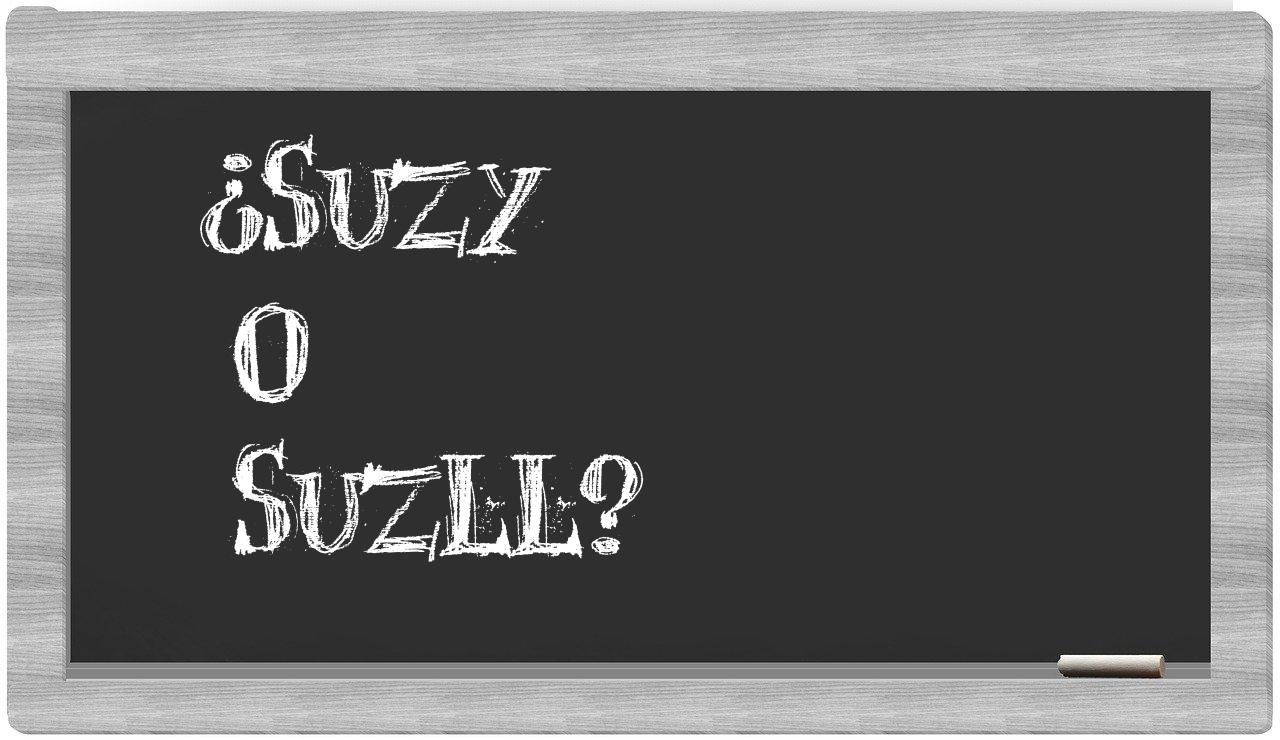 En la situación particular que se presenta entre los términos suzy y suzll, no deberías titubear, puesto que únicamente suzy es la que se encuentra adecuada y debidamente registrada, mientras que suzll no figura en el prestigioso Diccionario de la Real Academia Española.
